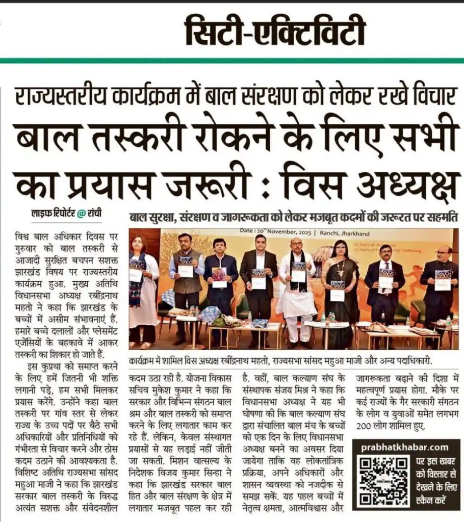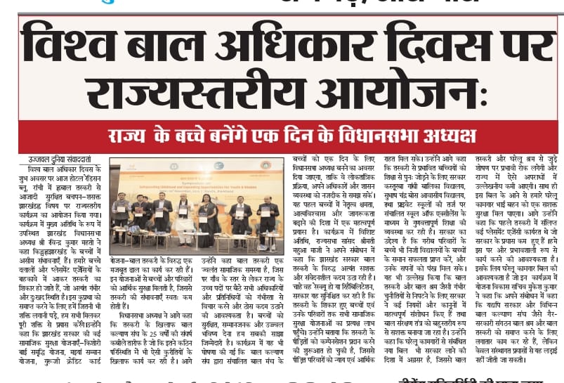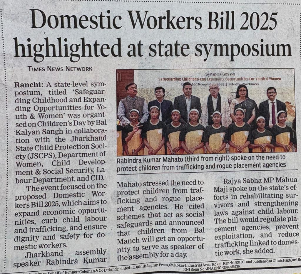 This World Children’s Day, Bal Kalyan Sangh joined hands with JSCPS, the Department of Women and Child Development and Social Welfare (WCD&SS), the Labour Department, and CID to organise a state-level symposium in Ranchi.